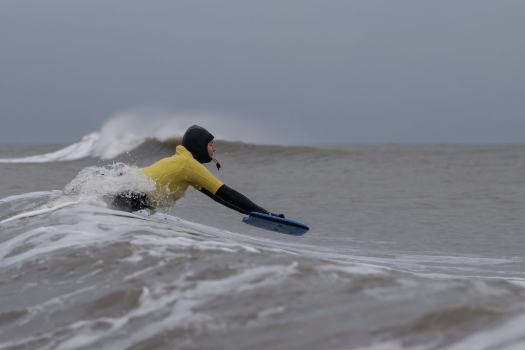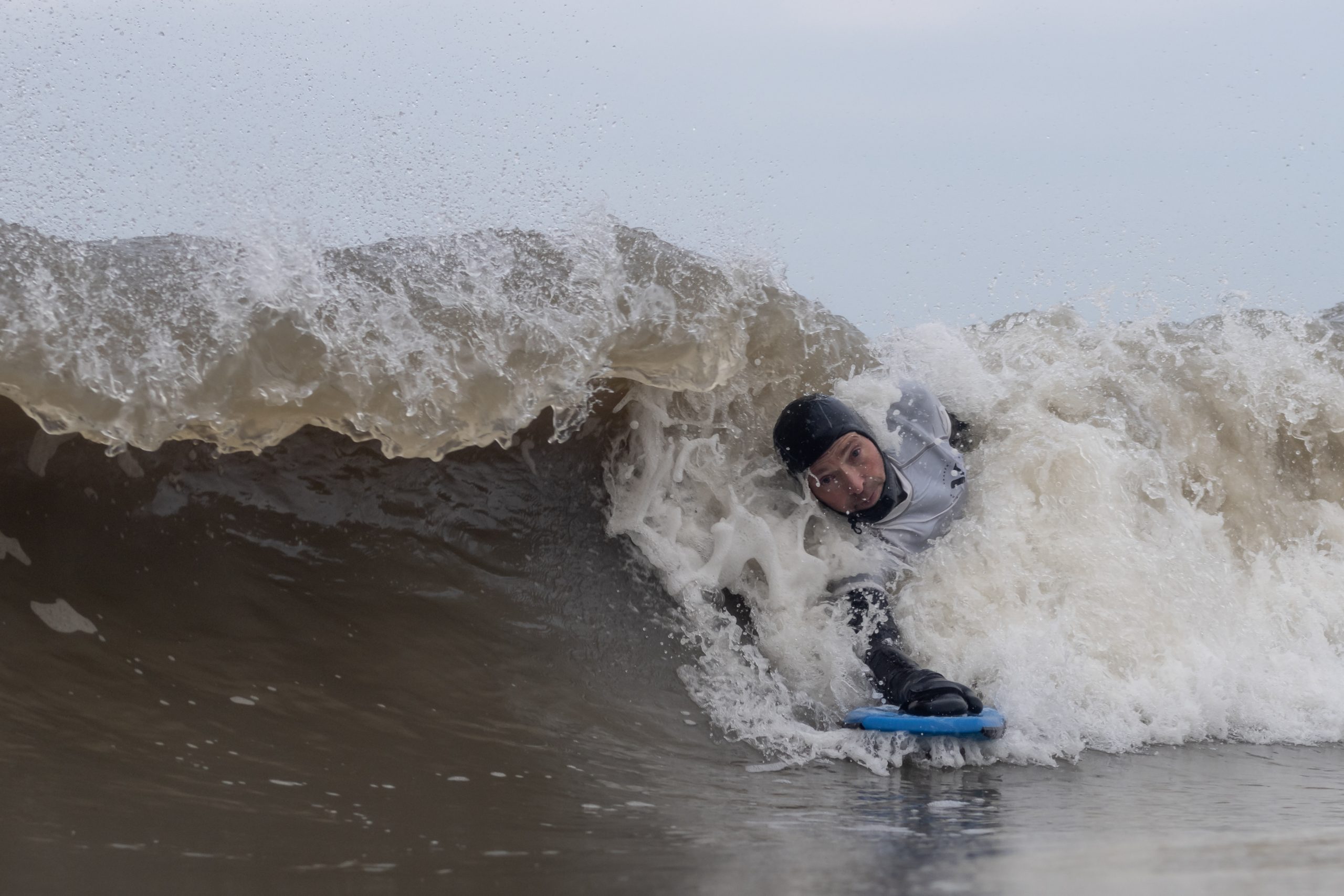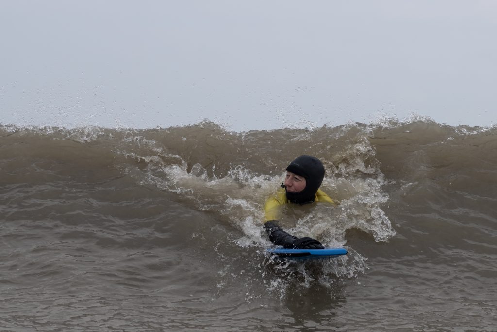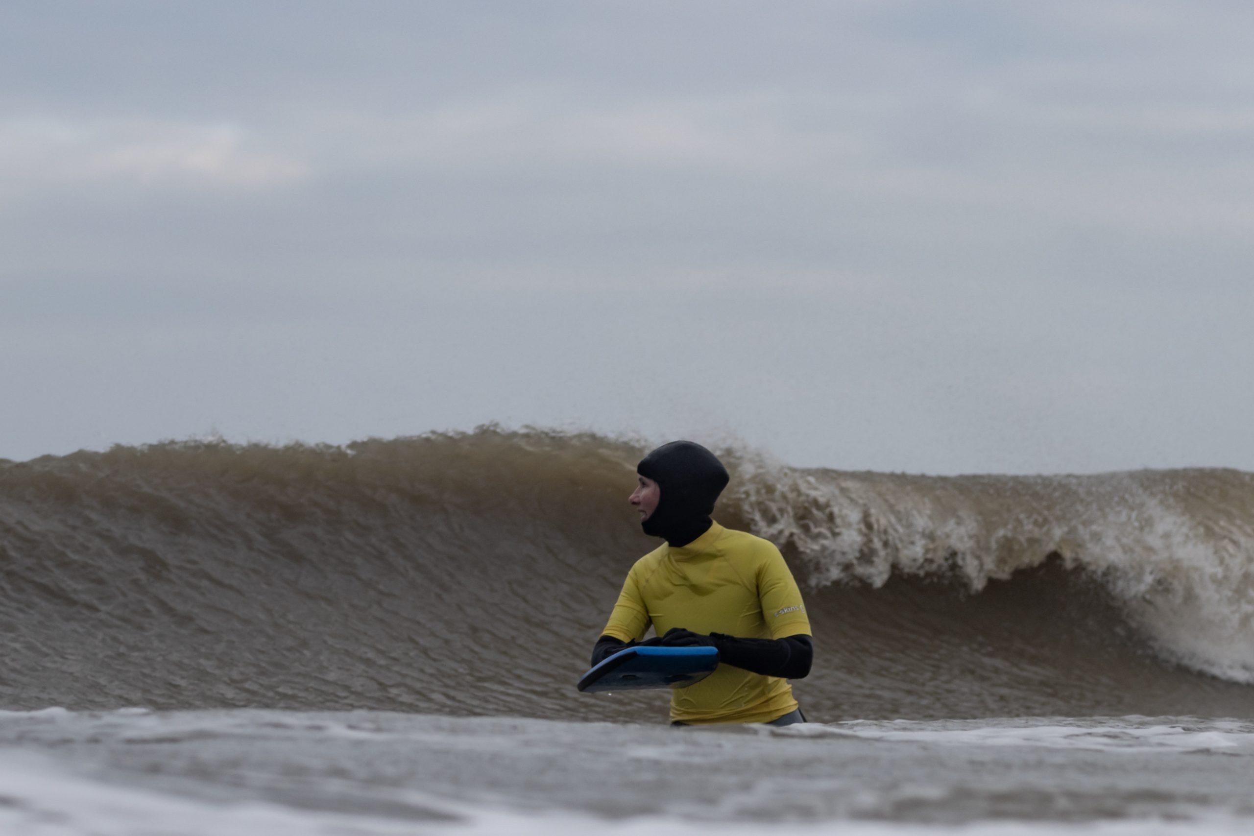 Een gure noordooster trok over het land en bracht verrassend mooie speelgolven met zich mee voor onze Vaaren Blue Mind Winter Editie. Deze maandelijkse sessie is speciaal voor mensen die willen spelen en de rust en ruimte van de natuur willen ervaren. Een diverse groep mensen voelt zich hiertoe aangetrokken: buitenspelers en surfers sowieso, mensen die revalideerden, ex-long-COVID-patiënten, mensen in herstel en mensen met Niet-Aangeboren Hersenletsel (NAH).