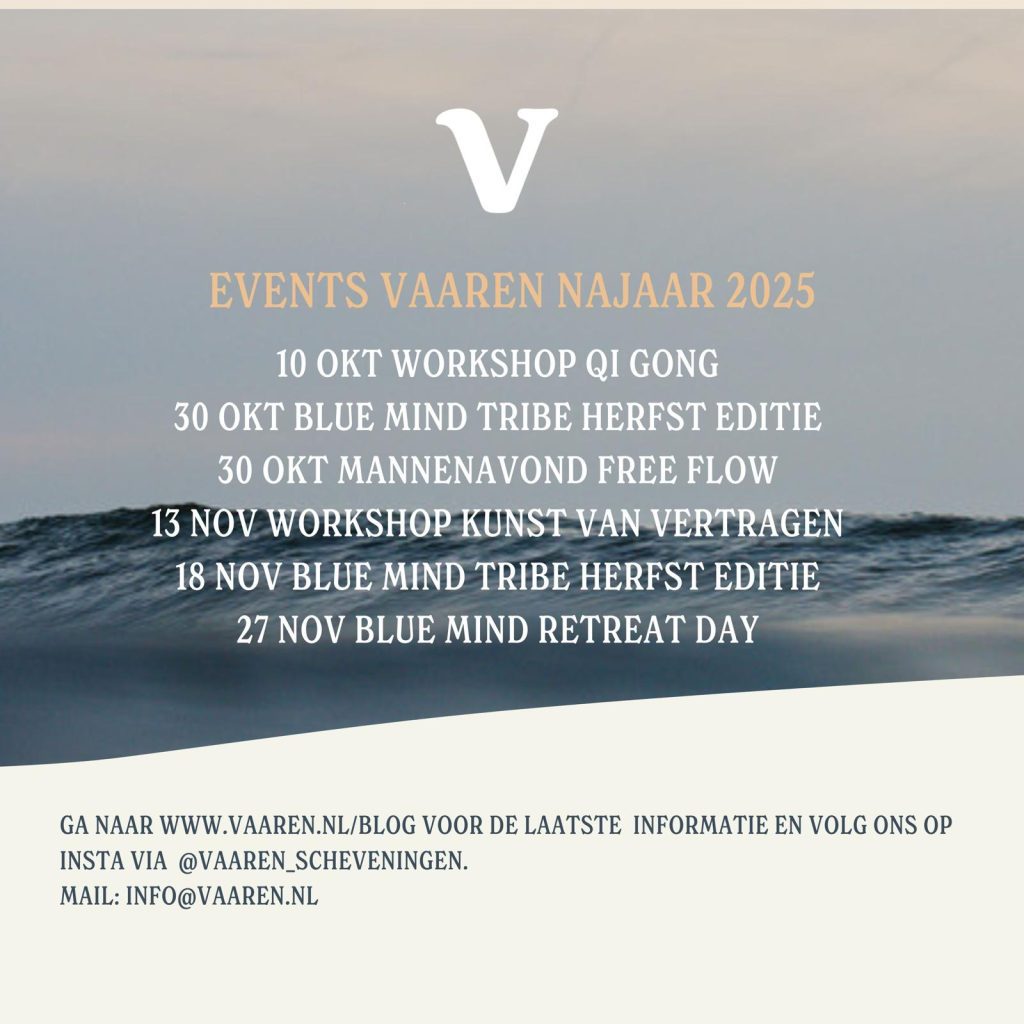 Er komt in het najaar veel moois aan bij Vaaren, tijd voor buitenspelen in de herfstzee, energiewerk via Qi Gong, een avondje free flowen met de mannen en leren over vertragen… Wie wil dat nu niet in de herfst?! Ook geeft Vaaren de hele herfst -en winterperiode watertrainingen vanaf De Noord op Scheveningen. Check ons […]